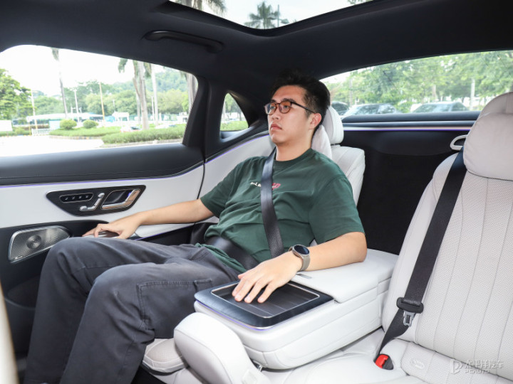 前排的配置也基本与后排相近,如果日常使用这台全新E300L,它更像是一台豪华四座轿车,如果让我选,会落座右后方座椅,因为那是它的最佳位置。